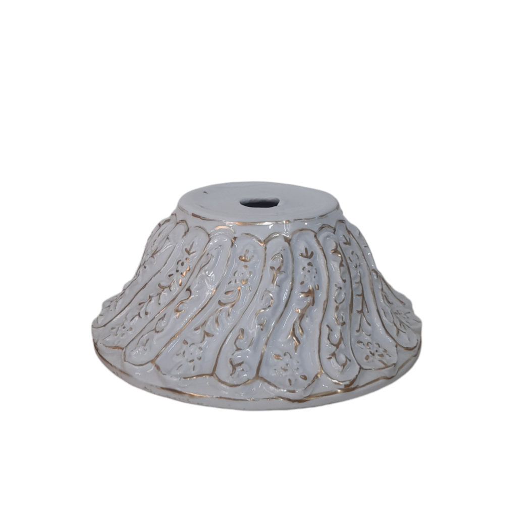 زیر دستگاه طلا نیلوفر، قطعه‌ای ظریف و منحصر به فرد از چینی است که به عنوان پایه اصلی برای ساخت لوستر و شمعدان‌های لوکس و کلاسیک مورد استفاده قرار می‌گیرد. این زیر دستگاه با طرح‌های گلدار و برگ‌های برجسته که با طلا تزئین شده‌اند، زیبایی و جلوه‌ای خاص به محصولات نهایی می‌بخشد.