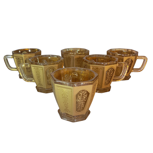 ست فنجان شیشه‌ای نفیس با نقوش برجسته و طلایی