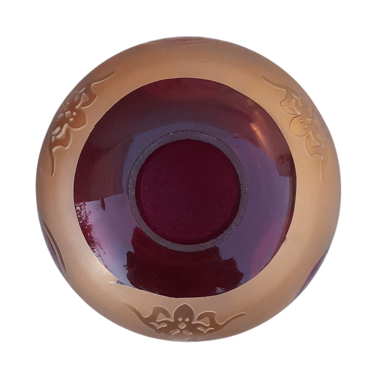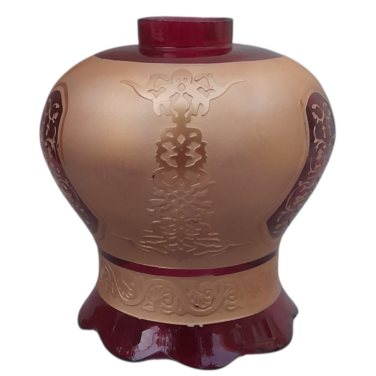 قطعه شیشه‌ای تزئینی آباژور با طرح برجسته اسلیمی و رنگ پختی قرمز و طلایی