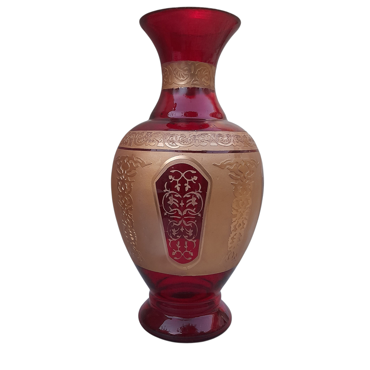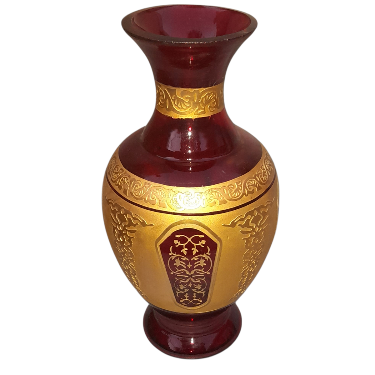 گلدان شیشه‌ای سنتی قرمز با نقوش اسلیمی طلایی